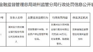 湖州吴兴农村商业银行因贷款管理不审慎等被罚款190万元